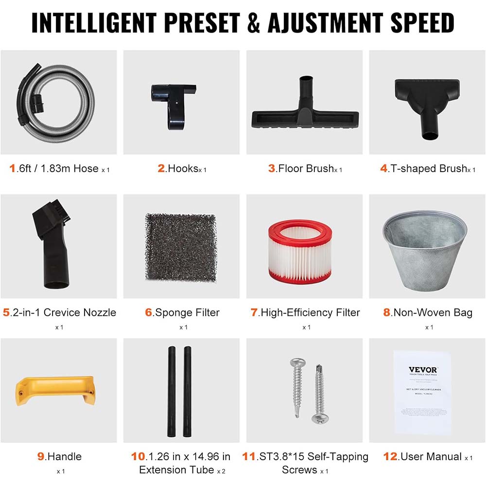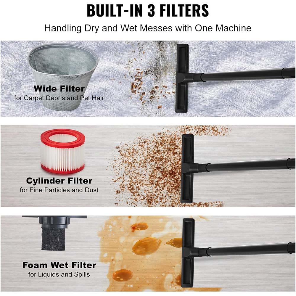 VEVOR 5 GALLON, 6PEAK HP WET/DRY VACUUM quantity